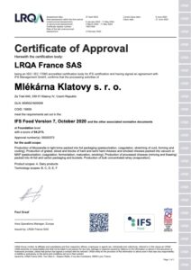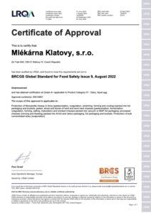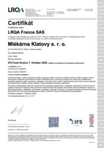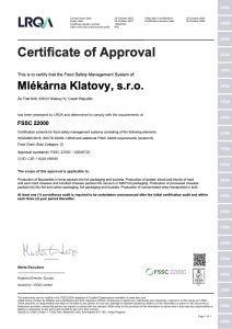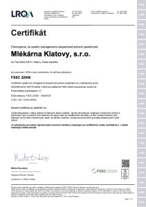 CERTIFIKÁTY Mlékárna Klatovy, s.r.o. je držitelem mnoha certifikátů dokládajících její významné postavení jak na českém trhu, tak na trzích zahraničních.